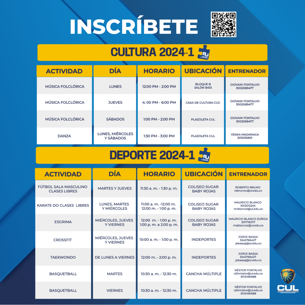 La Corporación Universitaria Latinoamericana – CUL, a través de sus talleres de música folclórica ofrece a su comunidad estudiantil, la posibilidad de conocer e interpretar un número importante de aires musicales y sus variantes existentes en la costa norte colombiana, que la ubica entre las más diversas y ricas a nivel mundial, contribuyendo enormemente en la formación integral de sus estudiantes, fomentando espacios lúdico-recreativos, en procura del mantenimiento y salvaguarda de estas manifestaciones musicales ancestrales y del crecimiento de la identidad propia y cultural.